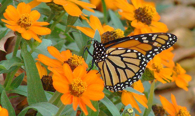 Back over at Bethel's main campus, I saw a couple migrating Monarchs in a garden outside the student union building, just where I'd seem some last year.