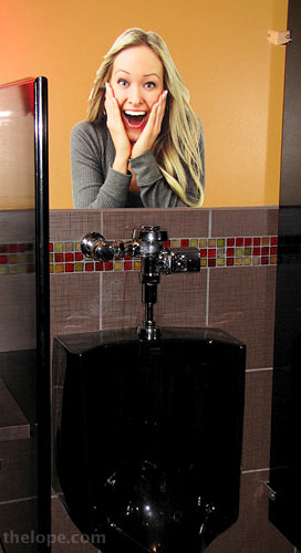 I'm enjoying The Razz, the newest restaurant in Hutchinson, Kansas. Here's a view of the urinal. Feel free to make up your own caption.